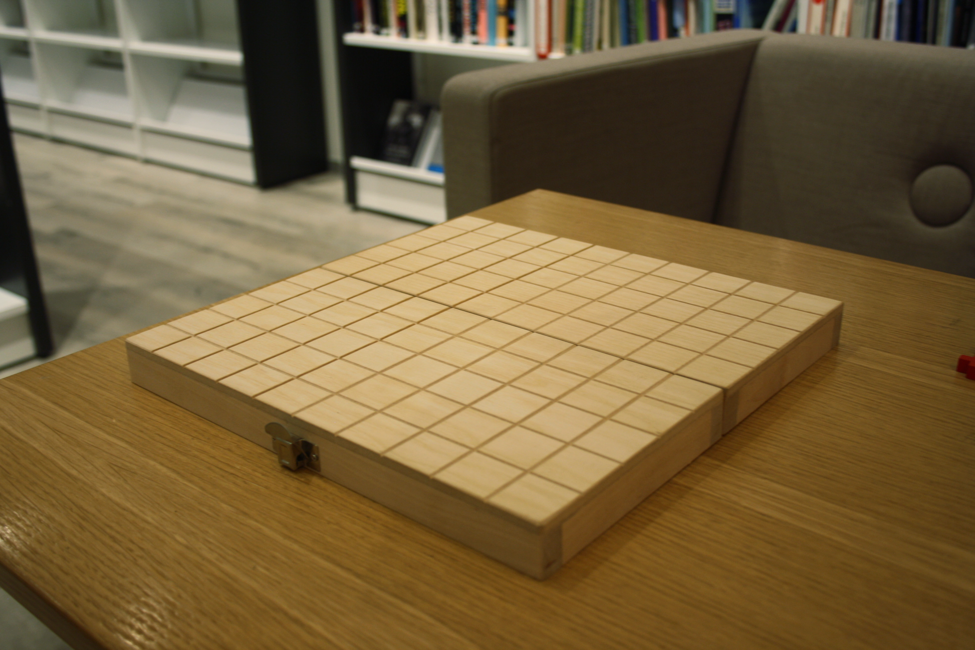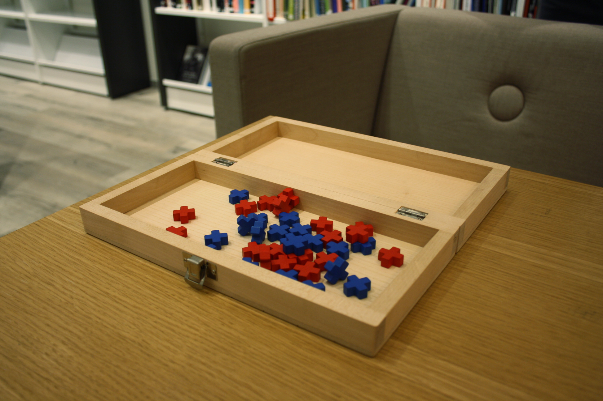 Our version of Five in a Row doesn’t end once all game pieces are placed. Each player has 16 pieces, and when all are on the board, a new phase begins called Overtime. In Overtime, players move the already-placed pieces to any new position. The first player to achieve five in a row wins the game.
