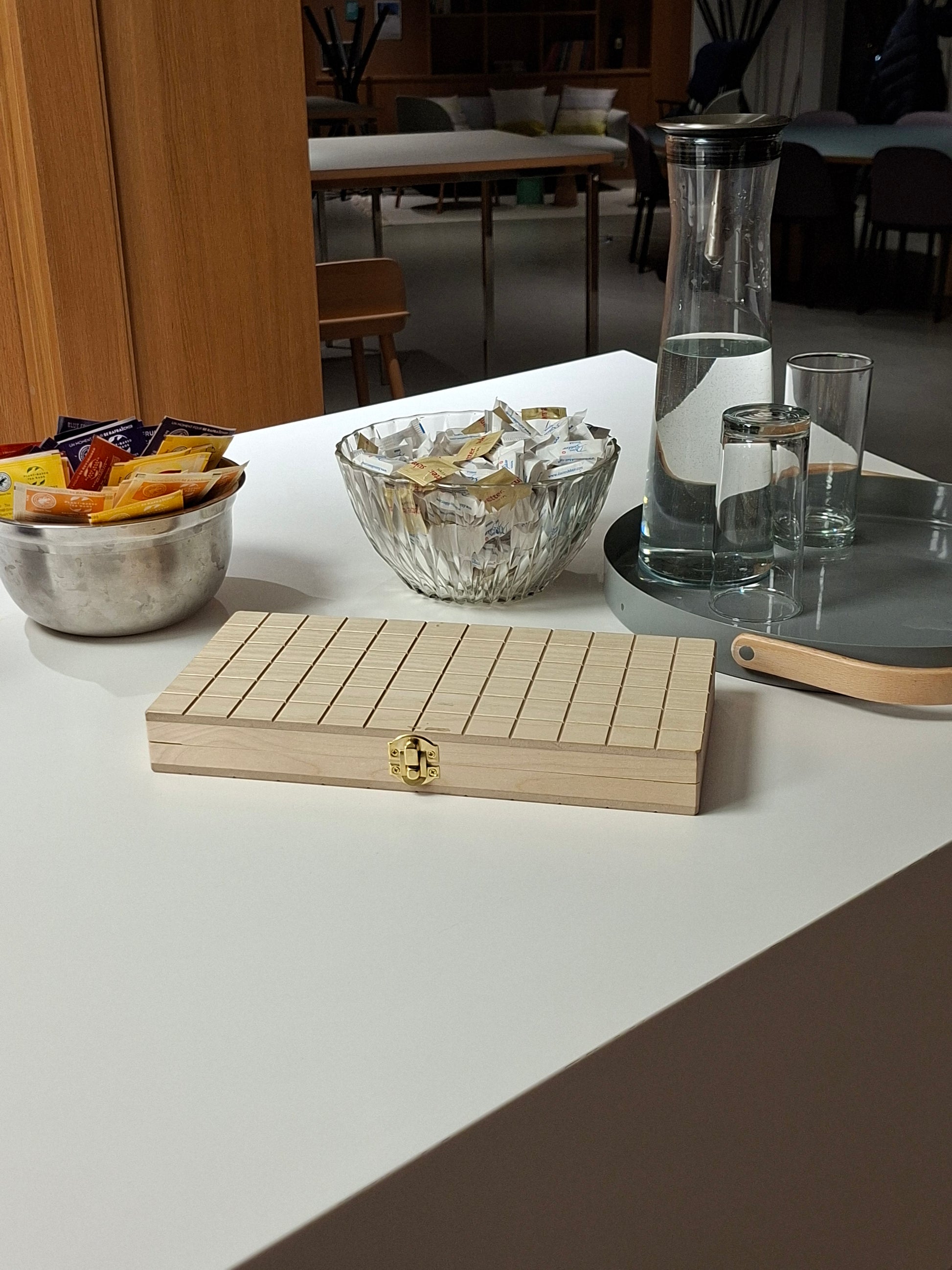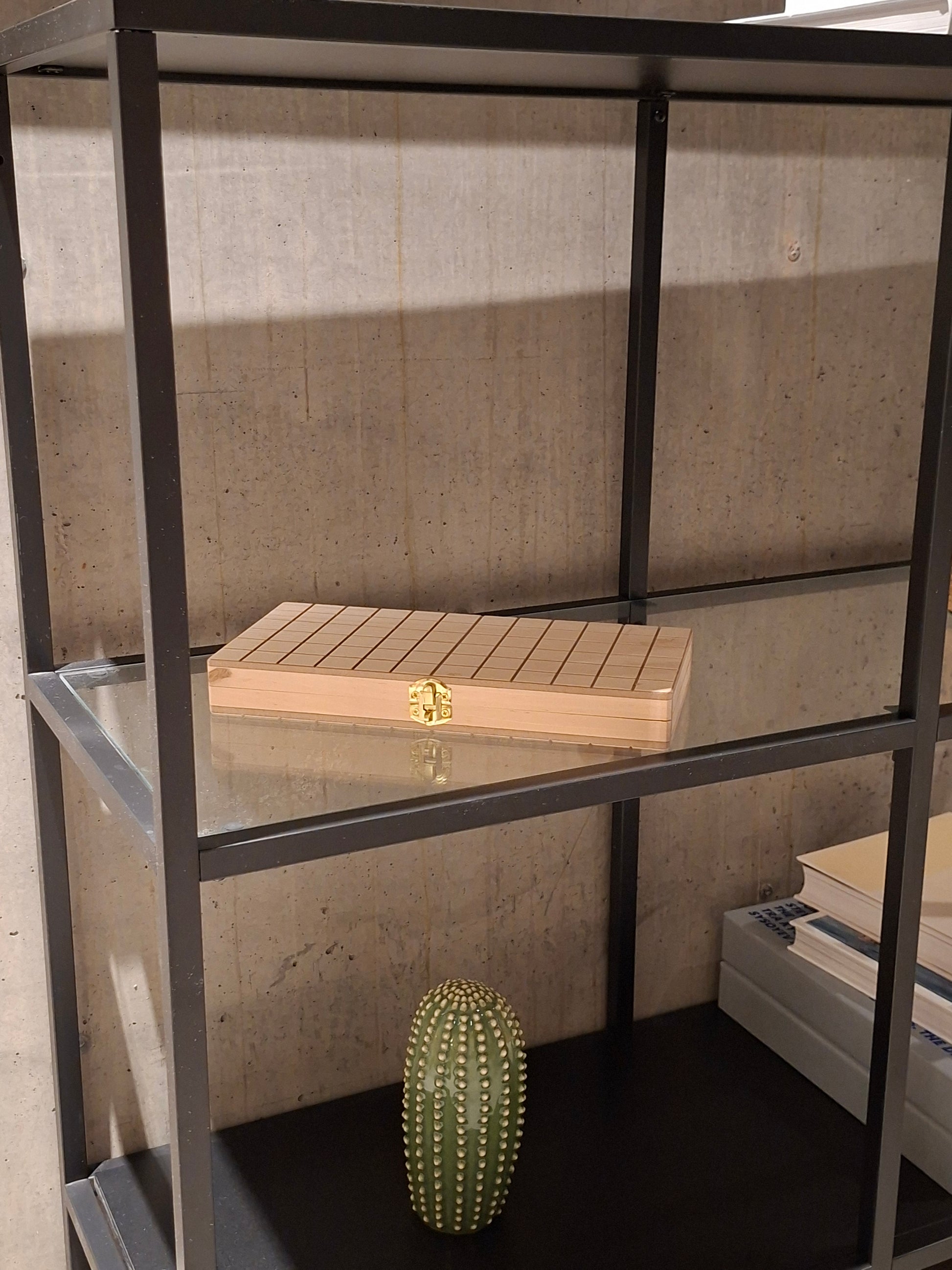 En handgjord låda med spelet fem i rad! Skapad för inredning och gott spelande!